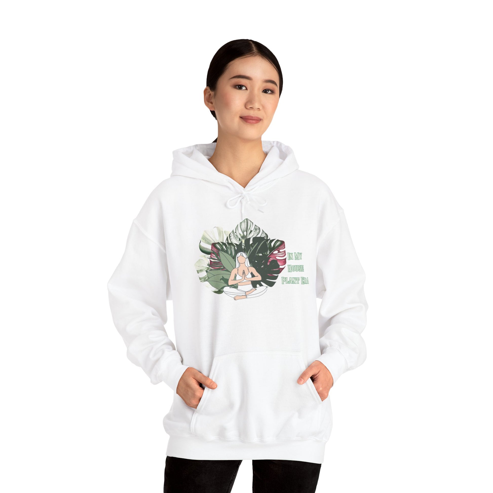 This cozy hooded sweatshirt brings calm and grounded energy to chilly mornings and slow evenings. Soft, medium-heavy fleece wraps you in warmth while a serene botanical design—featuring a seated figure surrounded by lush leaves—sets a quiet, mindful tone. The roomy kangaroo pocket and double-lined hood invite you to tuck your hands in and settle into the moment. Built for everyday wear, the smooth cotton/poly blend holds colors well and resists stretching, so the art stays vivid through many washes. Wear it for gentle walks, journaling sessions, or when you want a little reminder to breathe and return to center.