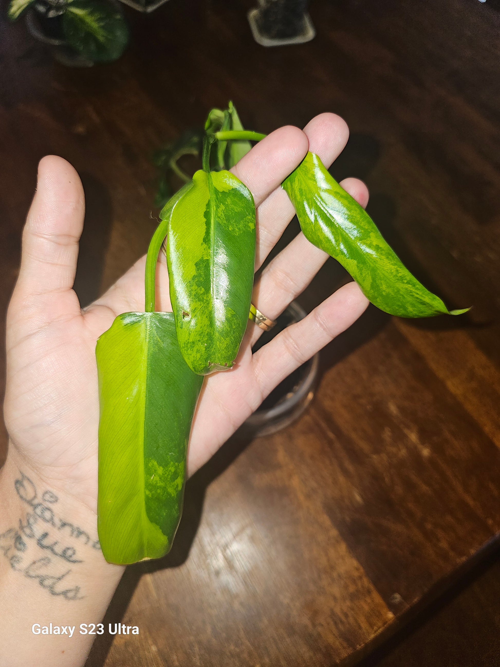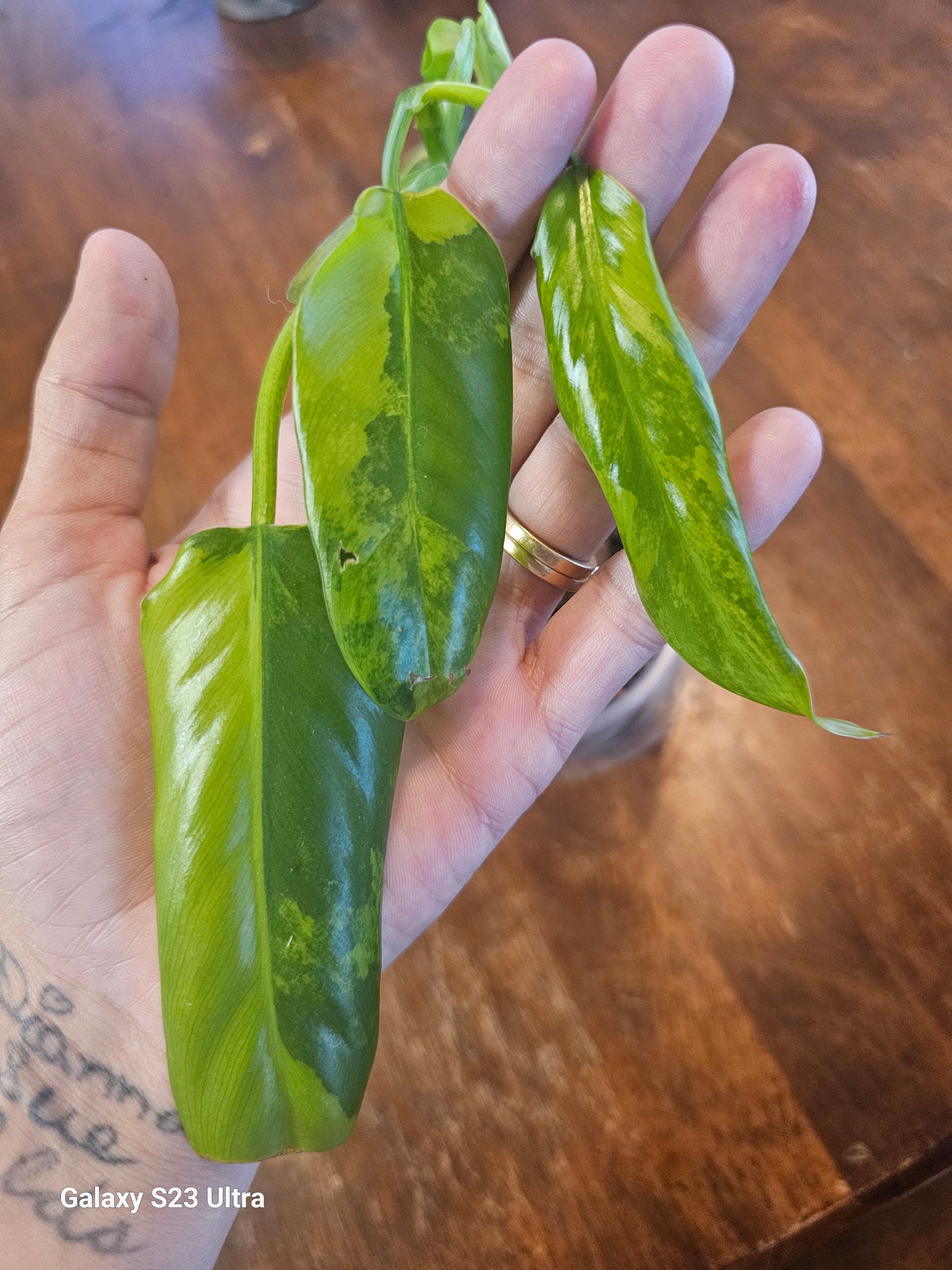 Top cut off my mama plant, and mama is very variegated and stunning. This plant is very well rooted and has great potential. She dont look the best right now, but you see those three leaves and that varigation. She's going to be stunning.