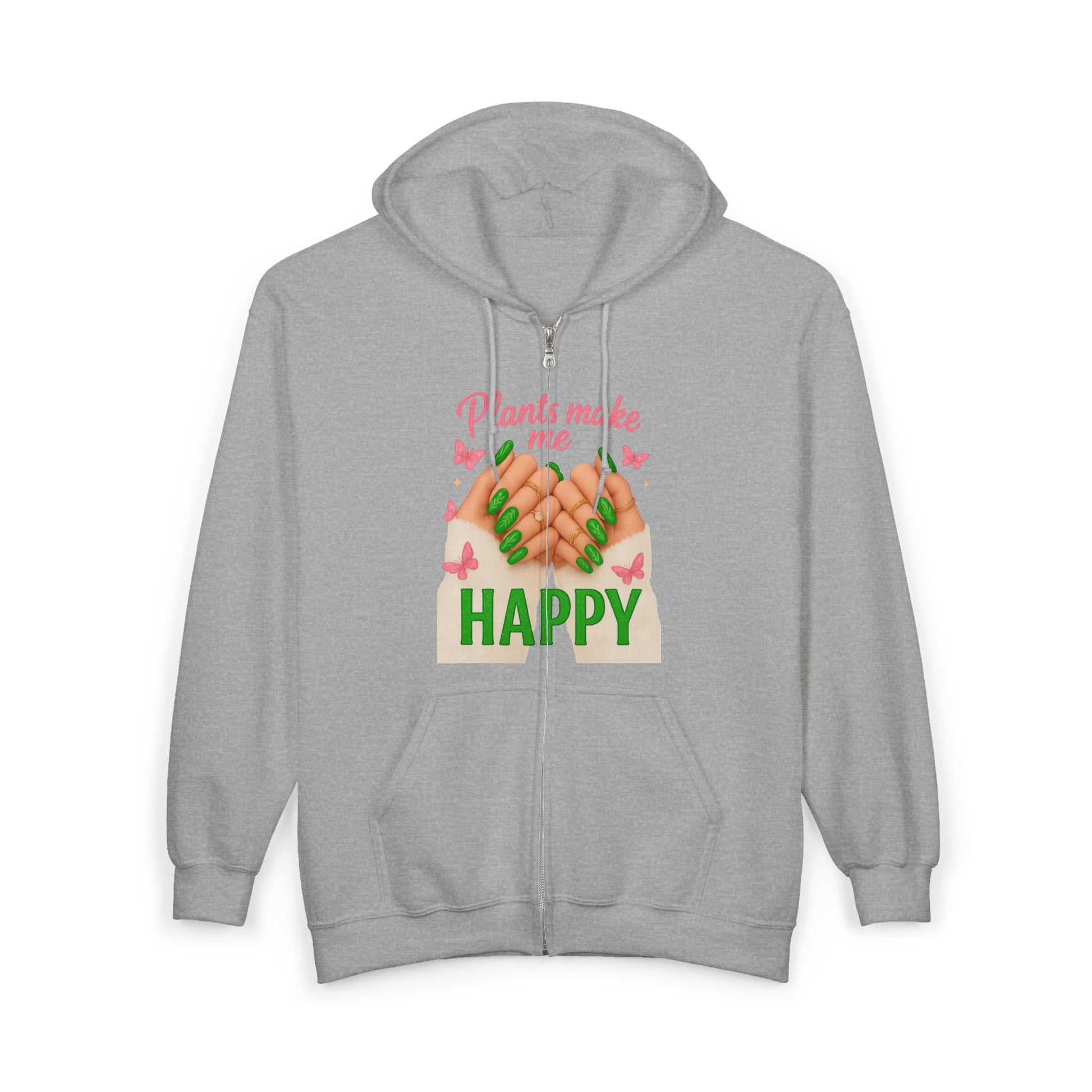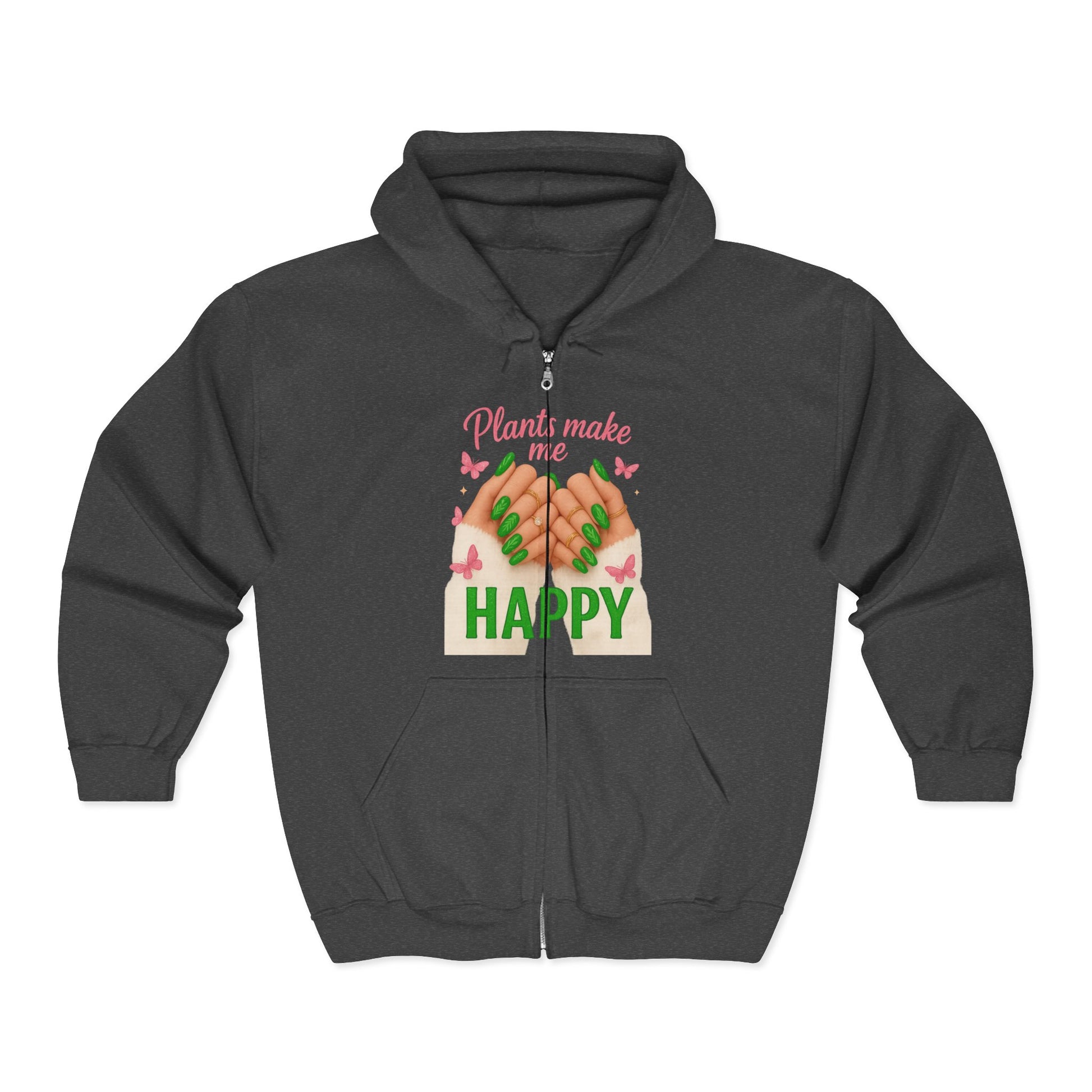 Plant Lover Zip-Up Hoodie — "Plants Make Me Happy"