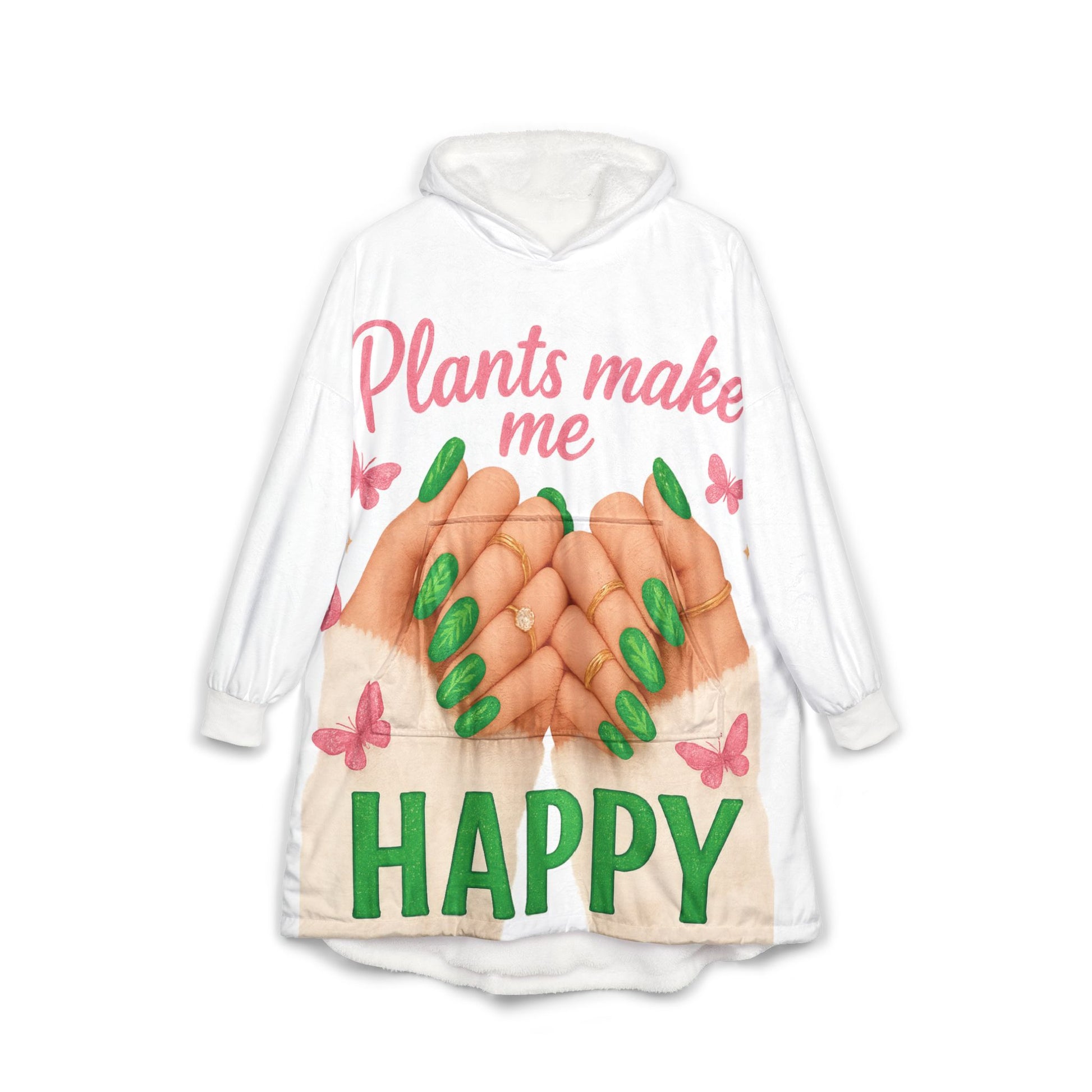 Plants Make Me Happy, Cozy Unisex Hooded Blanket - 'Plants Make Me Happy' Design, Perfect for Lounging, Gift for Plant Lovers, Home Comfort, Self-Care Essentials