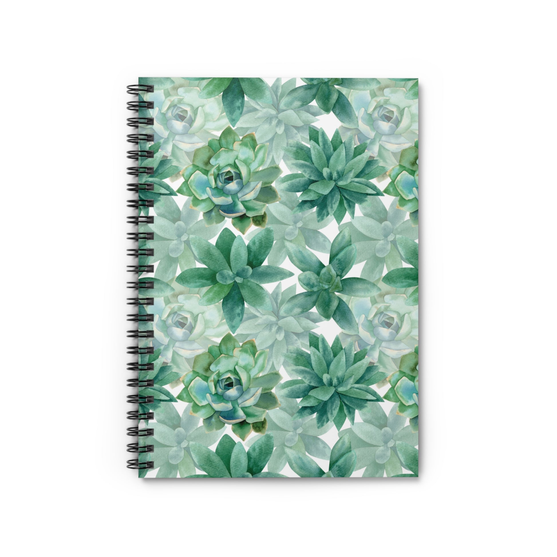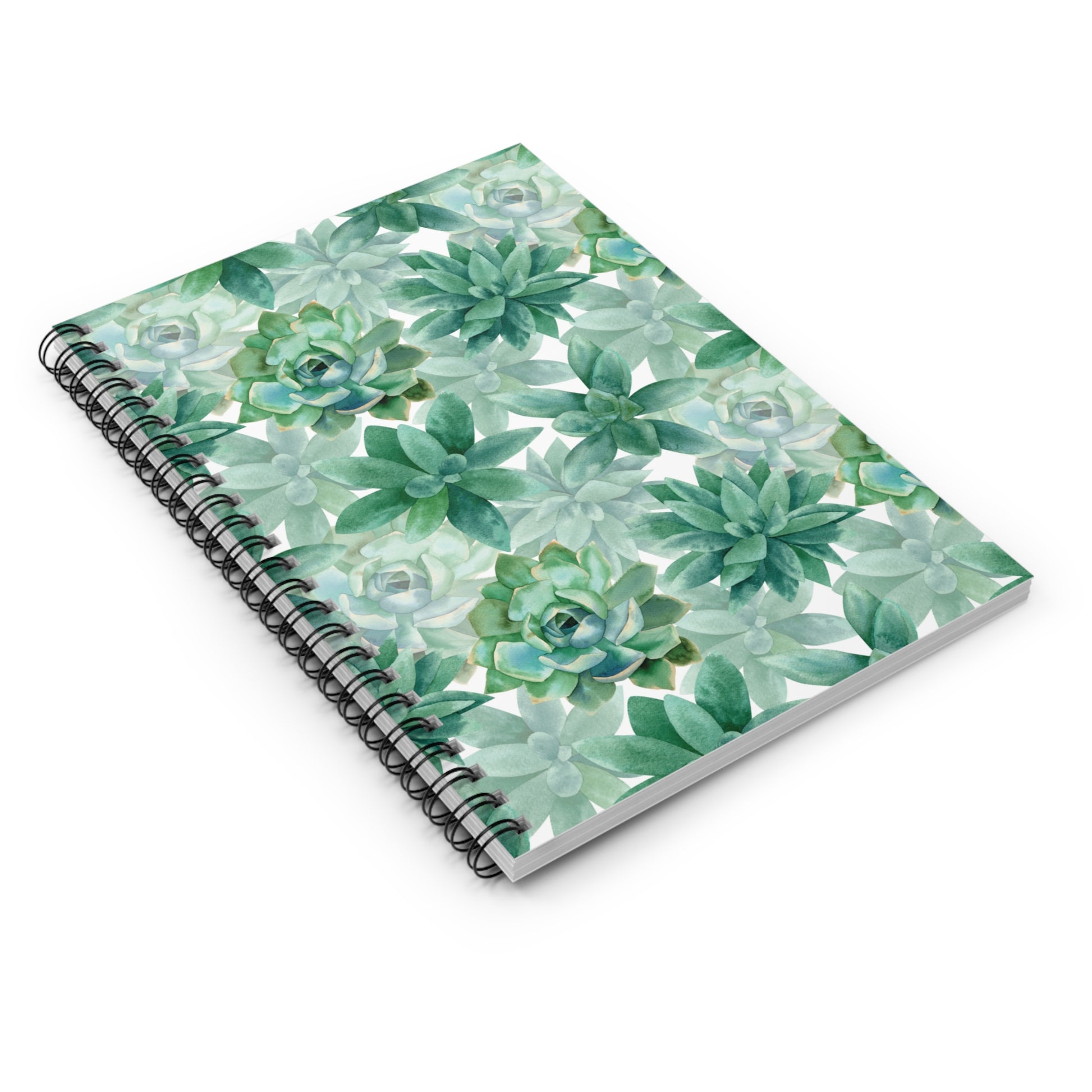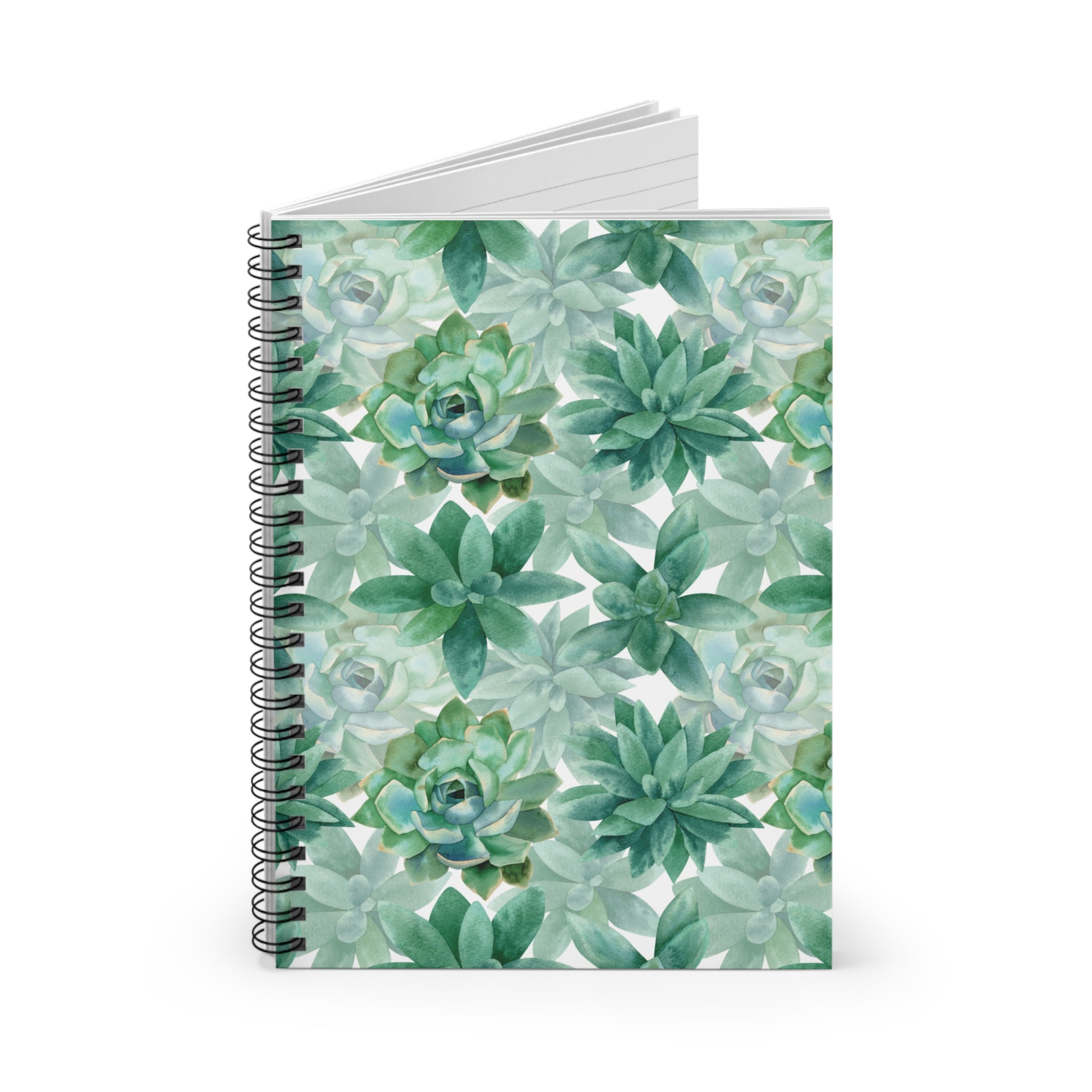 Soft, green succulents ripple across the front cover, inviting calm and focus. This spiral-bound ruled notebook sits comfortably in your hands at 6 x 8 inches — small enough for a tote, large enough for plans, lists, and daily notes. The metal spiral lies flat for easy writing and allows pages to be removed cleanly when you want to share or archive. Inside, 118 ruled pages on 90gsm paper take ink and graphite well, while a discreet document pocket inside the back cover keeps receipts, clippings, or loose notes close at hand. The printed front cover brings a little nature onto your desk; the dark grey back adds a grounded contrast that hides wear and tear. It’s the kind of notebook you reach for when you need clarity, a place to sketch a thought, or a calm page to return to each day.